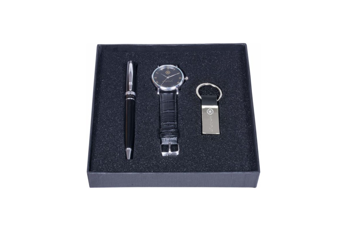 این ست شامل یک عدد ساعت مچی و یک عدد خودکار و یک عدد جاسوئیچی داخل جعبه مقوائی نفیس و زیبا میباشد.
