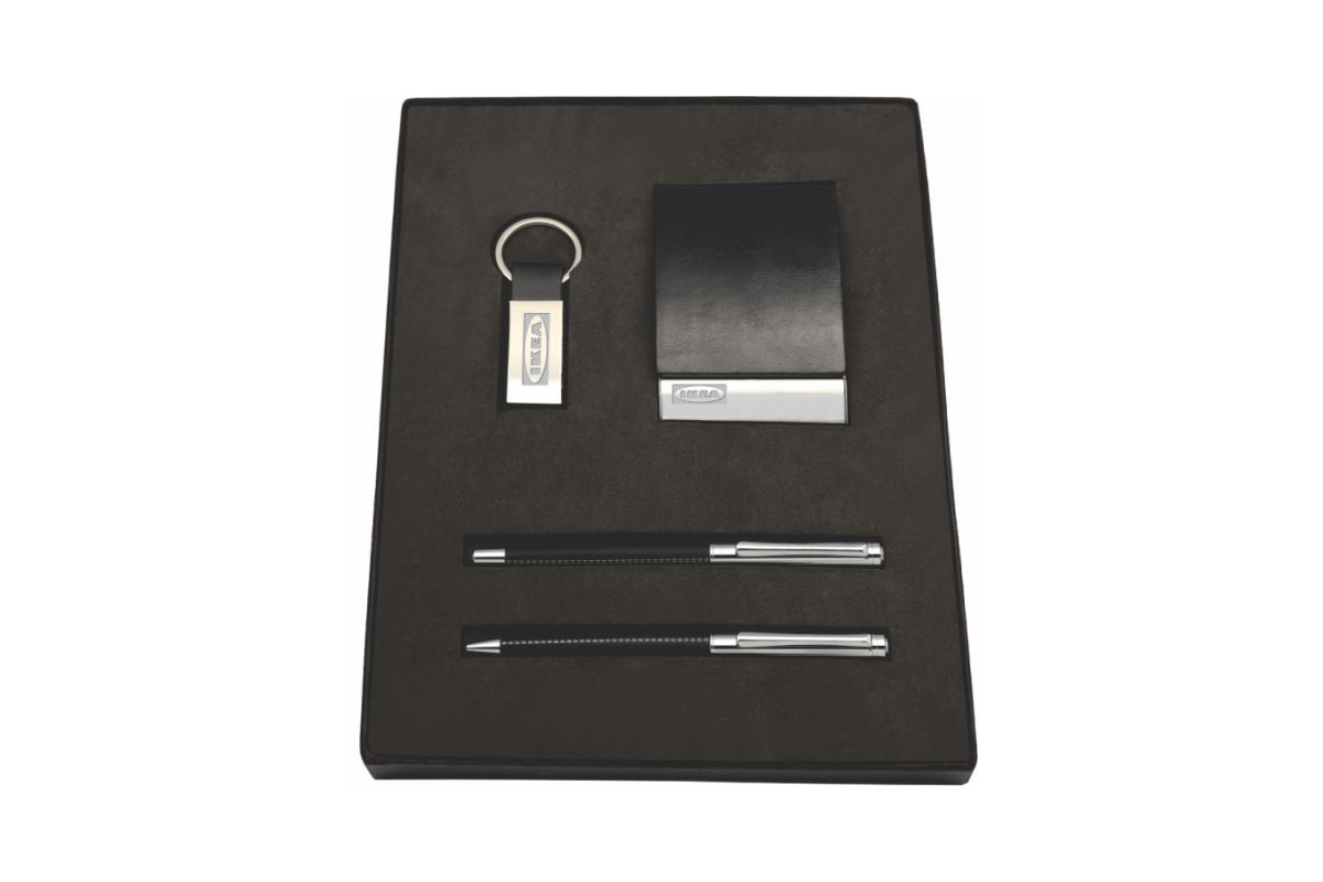 این ست نفیس شامل یک عدد جاکارتی، یک عدد جاسوئیچی و یک ست خودکار و روانویس داخل جعبه مقوائی نفیس و زیبا میباشد.