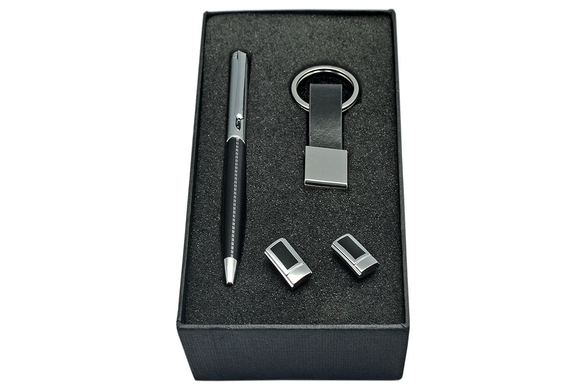 این ست شامل دکمه سردست ،خودکار و جاسوئیچی داخل جعبه مقوائی نفیس و زیبا میباشد.